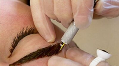 Microblading uses a blade-shaped tool with a row of tiny, barely visible needles to create fine, realistic, and natural hair strokes.’
